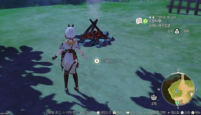 그리고 작은 항구도시에서 남쪽으로 내려가다 보면, 돌다리를 거넌 후 바로 우측에 모닥불이 있고, 거기서 휴식 및 요리를 할 수 있습니다. 요리는 각종 효과가 있으므로 꼭 조리해보시기 바랍니다. 또한 모닥불을 조사하면 허무의 열쇠 사용횟수가 회복되는 효과도 있습니다.