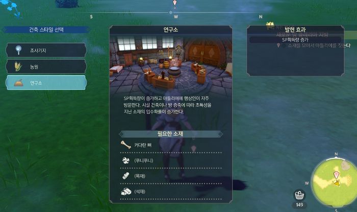 아틀리에의 건축 스타일은 조사기지, 농원, 연구소 3가지 스타일이 있고, 제각각 효과가 다릅니다.
