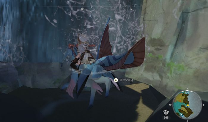 - 노멀 퀘스트 '폭포의 망나니'를 클리어하면, 물짐승을 타고 다닐 수 있습니다. 물짐승에 탑승한 후, 폭포에 다가가면 폭포오르기가 가능하므로, 이 섬의 북동쪽으로 가보시기 바랍니다.