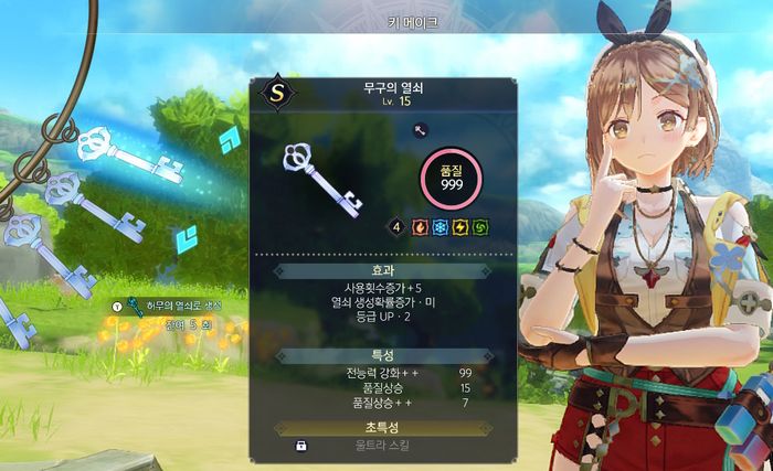| 라이자의 아틀리에3 무구의 열쇠 한번에 많이 조합 하는 방법 (0) | 2023.05.11 |