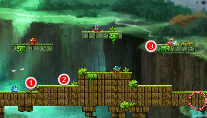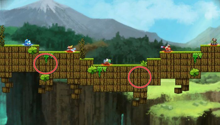 좌측 워프장치를 타고 위로 올라간 뒤, 좌측 나무 벽을 파괴후, 보물상자 - '대폭탄' 획득