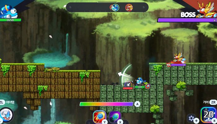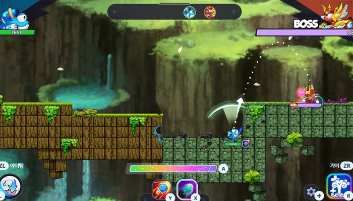 혹여나 풀잎이 파괴된 경우, 조금 뒤쪽에서 보스를 공격한 후, 보스가 공격하면 벽쪽에 붙어서 숨는 식으로 플레이하면 이길 수 있습니다만, 컨트롤이 다소 필요할 것입니다.