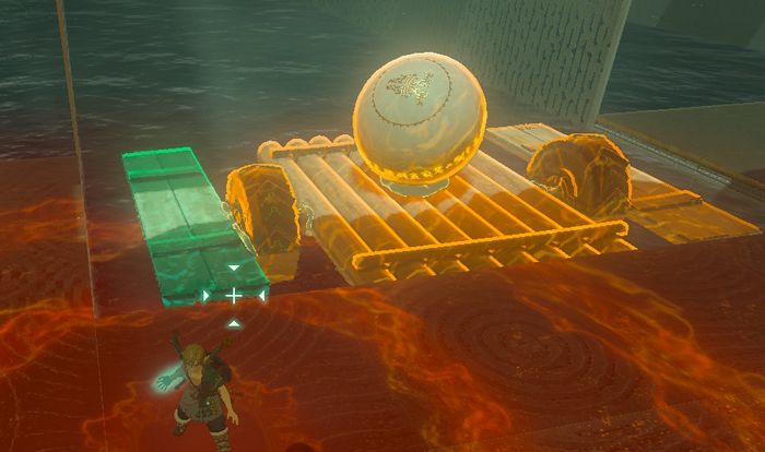 차량에 철구슬을 붙인 후, 용암을 건너갑니다. (차량의 바퀴를 보면 화살표로 진행방향이 표시되어 있습니다)