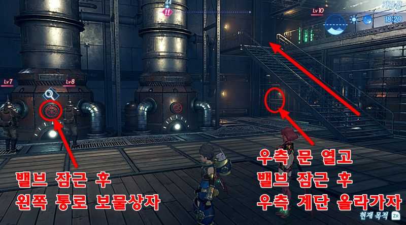 좌측에 보이는 밸브를 조사합니다. 그러면 위로 뿜어져나오는 증기가 사라지게 됩니다. 그후 밸브 좌측의 통로를 지나 사다리를 올라간 뒤, 보물상자를 획득합시다. 코먼 코어 크리스털, 도움의 손 Ⅰ 등을 얻을 수 있습니다.
