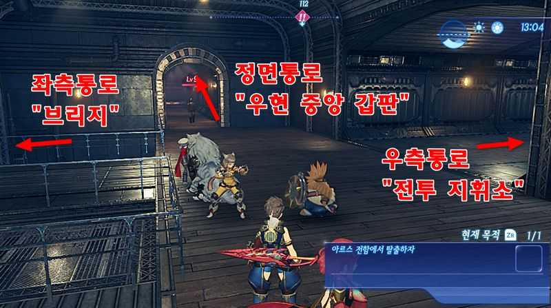 - 좌측 통로를 따라 문을 열면 랜드마크 "브리지"가 나옵니다. 브리지에서 우측통로로 이동하면 우현 갑판이 나오며 보물상자를 획득할 수 있습니다. 풍속성 대미지 감소 Ⅰ(풍속성 대미지 10% 감소) 획득