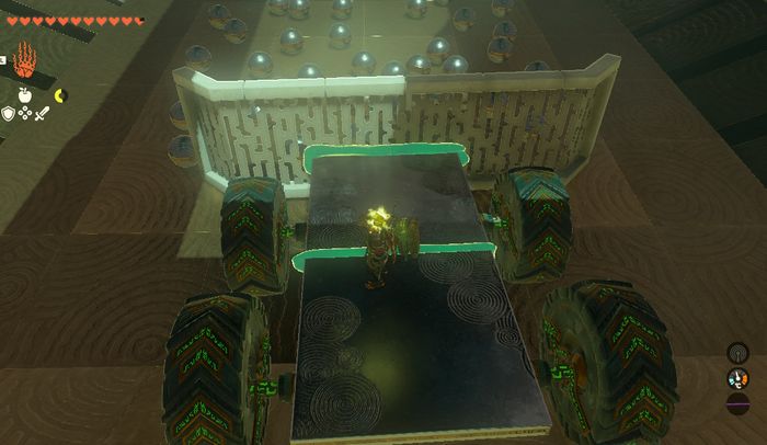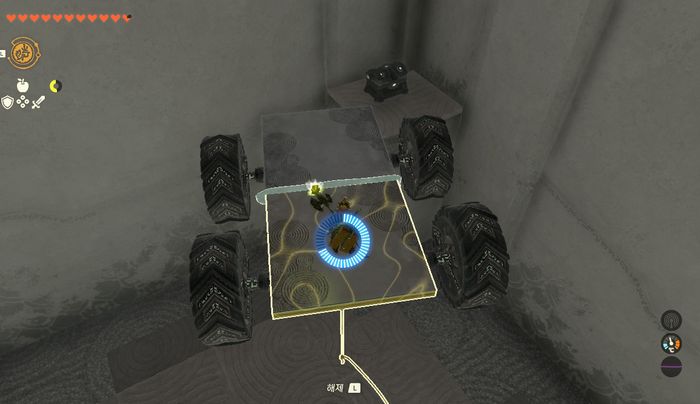안쪽에 있는 사륜차를 위로 들어 올렸다가 내린 후, 리버레코로 보물상자 튼튼한 골렘의 활