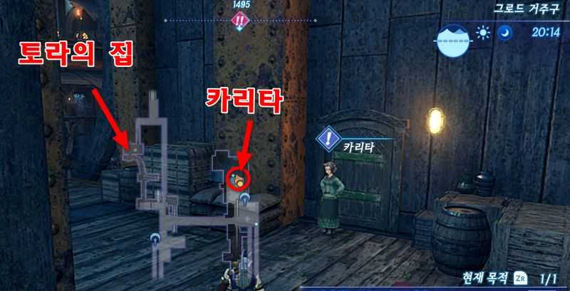 그후 굴라에 있는 "트리고 거리"에서 "토라의 집"으로 이동후, "갈레드 거주구"를 지나 "그로드 거주구"에 있는 "카리타"와 대화합니다.