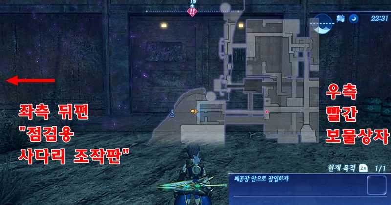 - 문 바로 우측의 빨간 보물상자를 열어보면 "점검용 사다리의 열쇠"를 획득할 수 있습니다.