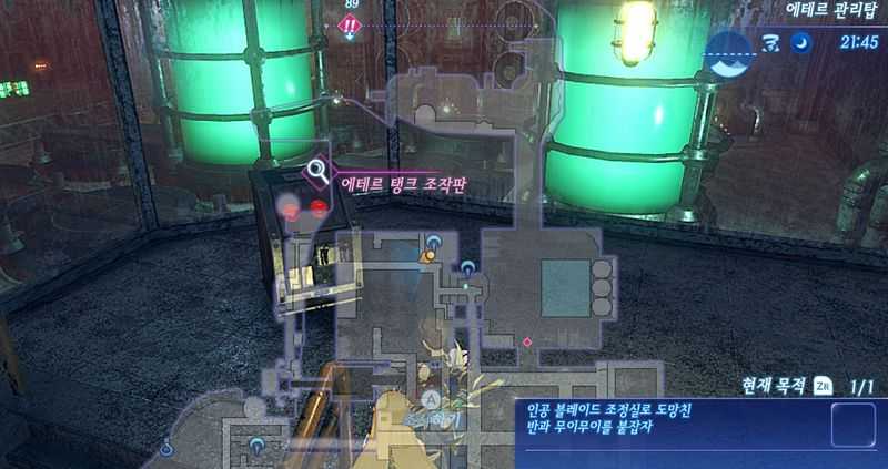 그후 "에테르 관리탑"의 "에테르 탱크 조작판"을 조사합니다. 그후 "에테르 관리탑"에서 우측 문을 열고 통로를 이동하면 "에테르 분리 탱크"에 도착합니다.