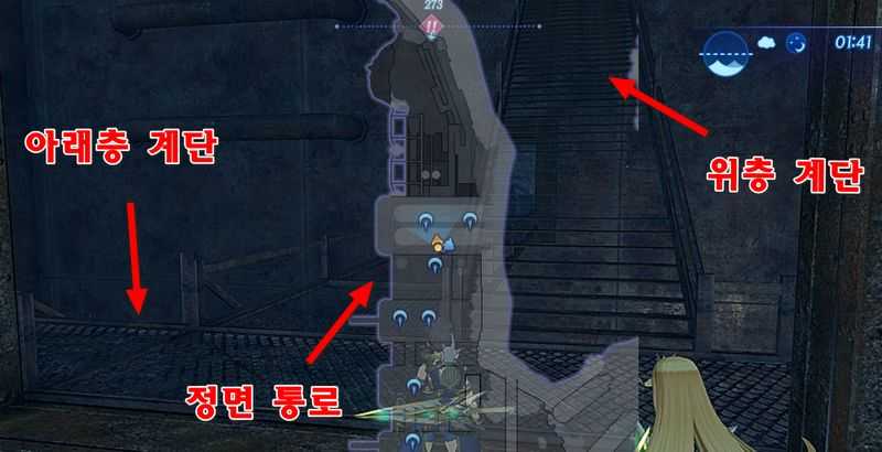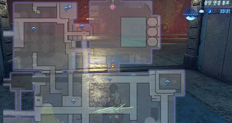 계단을 완전 내려가 문을 열고 나가 북쪽으로 계속 이동하면 "중앙 연결 통로"가 나옵니다.