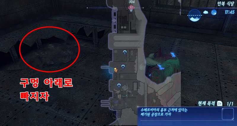 환풍기 안쪽으로 들어가면 이벤트가 발생합니다. "폐기된 공장" 도착