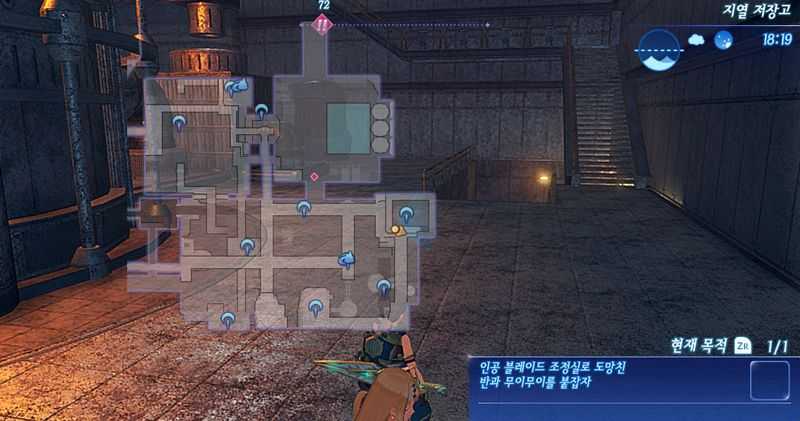 (선택사항) 위층 통로 좌측의 "관리실 문"을 열기 위해서는 "관리실의 열쇠"가 있어야 합니다. 관리실의 열쇠는 지하 2층 남쪽으로 쭉내려가 안쪽의 "델리제라 의무실"에서 귀중품 "관리실의 열쇠"를 획득할 수 있습니다. 관리실의 열쇠를 획득해 관리실 문을 열면 로케이션 "연결동 관리실"이 나옵니다. 방안의 보물상자를 열면 코먼 코어 크리스털, 아츠 어그로 상승 Ⅱ (드라이버 아츠와 필살기로 상승하는 어그로 7% 상승) 획득가능합니다. "델리제라 의무실"에는 Lv.33 레어 몬스터 "죄인 사냥꾼 슬레이프"도 등장합니다. (잡으면 마그넷 칩, 솔저 링, 셸 슈즈, 속성구 우선 파괴, 클래식 메달 등을 획득가능)