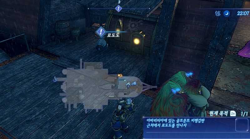 그후 스킵트래블로 아바리티아 상회 골트문트의 "골트문트 비행갑판"으로 이동하여 건물북쪽에 있는 의뢰인 "로도도"와 대화합니다.