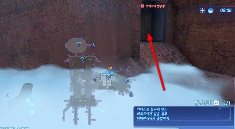 먼저 여인숙에서 "푹 쉬기"를 통해 우측상단의 환경정보에서 운해면이 중앙라인보다 위쪽에 있는 상태로 만듭니다. "푹 쉬기"는 굴라 트리고 거리의 랜드마크인 "라콘분수" 근처 여인숙, 수페르비아 제국 제도 알바 마겐의 랜드마크인 "여인숙 자르카마로" 등에서 가능합니다.