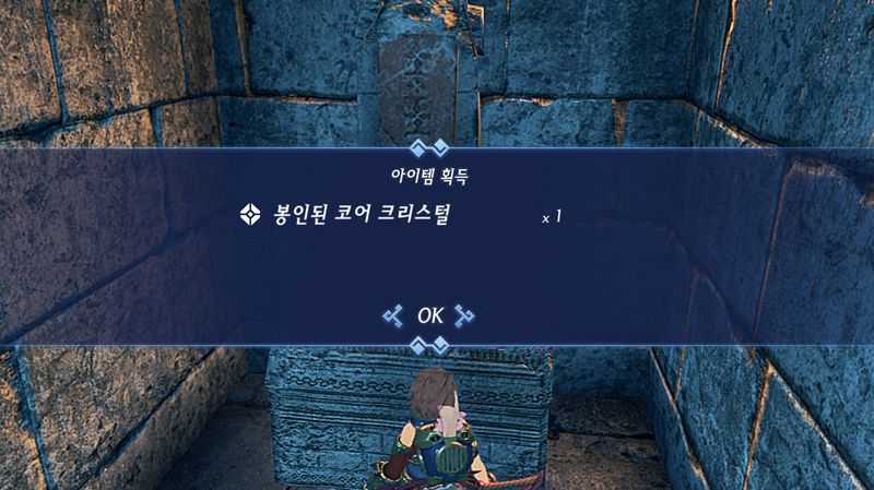 룩수리아 왕국 왕도 테오스아우레의 "여인숙 아나스타시스"로 이동한 뒤, 맵 남쪽에 있는 "봉인의 제단"으로 가서 "독독 군소" 100개를 바치면 "봉인된 코어 크리스털"을 획득할 수 있습니다.