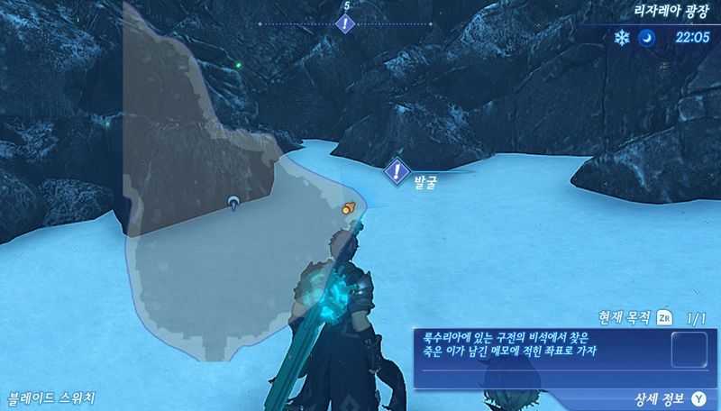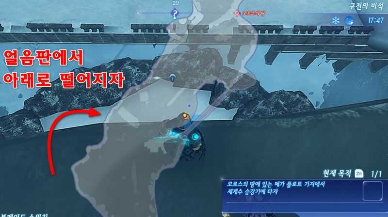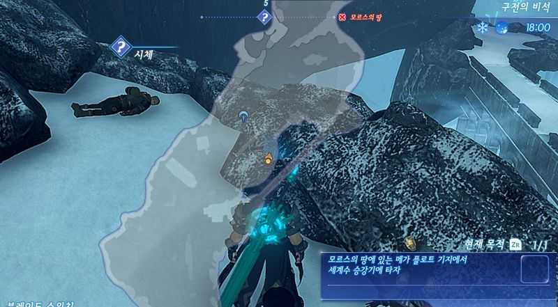 룩수리아 왕국 상층의 "바넬로 소유적"으로 스킵트래블합니다. 그후 북동쪽으로 이동하면 로케이션 "구전의 비석"이 나오는데 거기서 얼음판 아래로 떨어지면 "시체"가 있습니다.