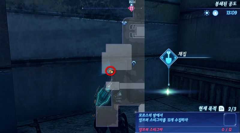 모르스의 땅 시가지의 "구 문명의 표류지"로 스킵트래블합니다. 그후 북쪽으로 올라가 "봉쇄된 공도"에 있는 채집 포인트에서 엄브러 스티그마를 쉽게 구할 수 있습니다. 총 12개 수집합니다.