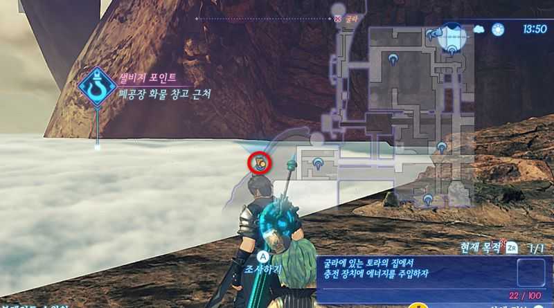 그후 템페란티아 곶의 "전상의 후미"로 스킵트래블합니다. 그후 바로 근처 언덕위를 올라가 샐비지 포인트(전상의 후미)에서, 골드실린더를 사용해 샐비지를 합니다. (B >B > A)