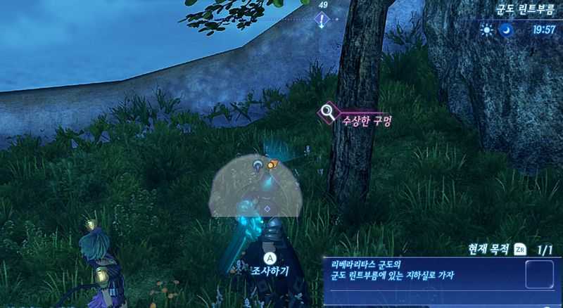 정면에 쓰러져 있는 "자다잔"이 있는 위치에서 맵 북쪽 끝으로 가면, 나무에 "수상한 구멍"이 있습니다. 이를 조사하면 숨겨진 계단이 나타납니다.