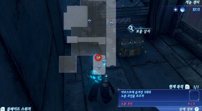 수페르비아 제국 상층의 "구 생산구 옥상 출입구"로 스킵트래블합니다. 그후 남서쪽에 있는 보물상자를 열면 노폰 코인을 얻게 됩니다.