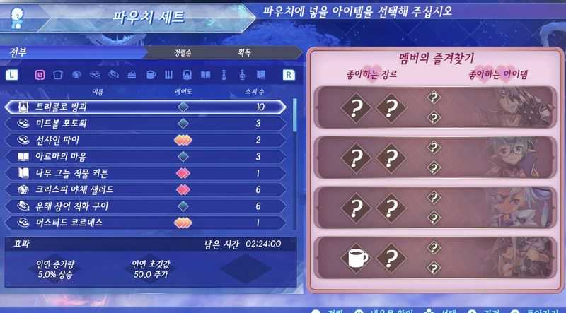 캐릭터별 좋아하는 장르 및 파우치 아이템 파는 위치