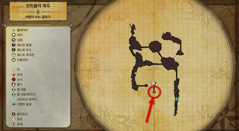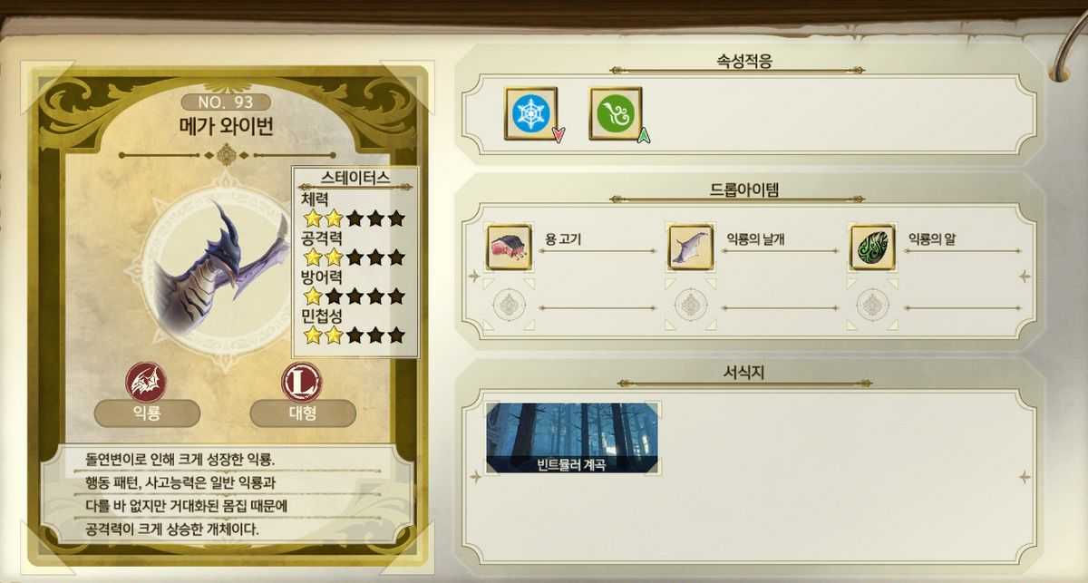 "메가 와이번"은 "빈트뮬러 계곡"에 서식하는 강적 몬스터입니다. 전체 맵을 켰을때 "강적" 표시가 있는 곳이 "메가 와이번"의 출몰위치입니다.