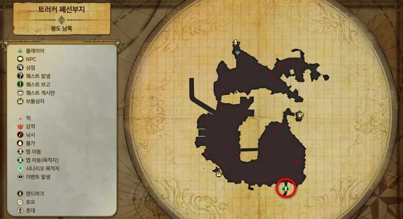 ???로 이동하면 "왕도 남쪽"의 "트러커 폐선부지"에 도착하게 됩니다.