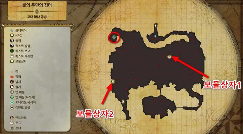 "고대 마나 공방"의 "불의 주민의 집터"의 북서쪽의 목적지(시나리오 목적지)에 도착하면 이벤트가 발생합니다.
