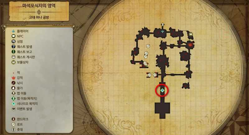 "고대 마나 공방"의 "마나포식자의 영역"의 남쪽의 문(시나리오 목적지)로 이동하면 이벤트가 발생합니다.