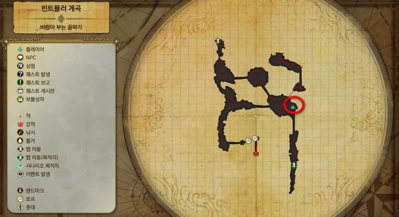 "고대수의 가지"는 "바람이 부는 골짜기"의 "빈트뮬러 계곡"에서 쉽게 수집가능합니다. 호숫가의 관목을 "풀베기 낫"(채집랭크2)으로 스윙하면 얻을 수 있습니다.