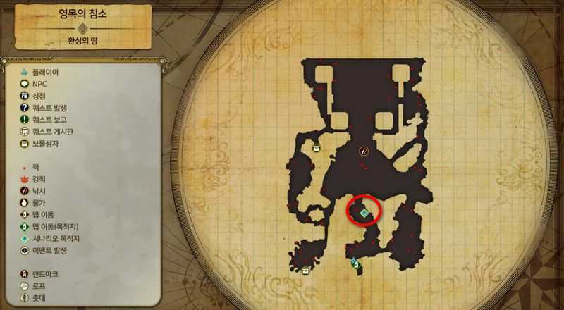 "환상의 땅"의 몽환의 상류"의 북쪽(맵이동 목적지)로 이동하면 "영목의 침소"에 도착하게 됩니다.