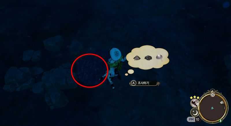"수저의 흙"은 "왕도 근교"의 "별수호자의 호수"에서 쉽게 수집가능합니다. "에어드롭"을 모험도구에 장착후, 호수에 잠수하여, 호수 바닥의 흙덩이를 조사하면 얻을 수 있습니다.