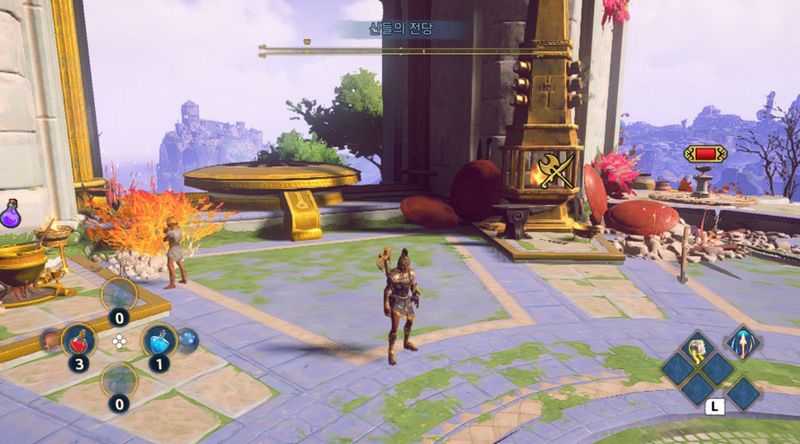 이벤트가 끝나면 "신들의 전당" 주변의 아이콘들을 확인해봅시다. 이곳에서는 여러가지 업그레이드가 가능하기 때문에, 앞으로 모험을 위한 주요 거점으로써, 자주 방문하게 될 것입니다.
