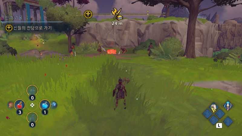착륙지점에 있는 연못에서 길을 조금 나아가면, 적 x4 가 있고 물리치면 보물상자를 열 수 있습니다. (도끼 "금지된 라브리스" 획득)