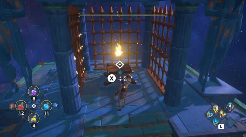 경기장이기 때문에 복잡한 퍼즐이 존재하지 않고, 그저 적과의 연속된 싸움에서 승리하면 되는 지하동굴입니다. 체력과 장비 업그레이드를 어느정도 한다면 어렵지 않게 클리어가능할 것입니다.