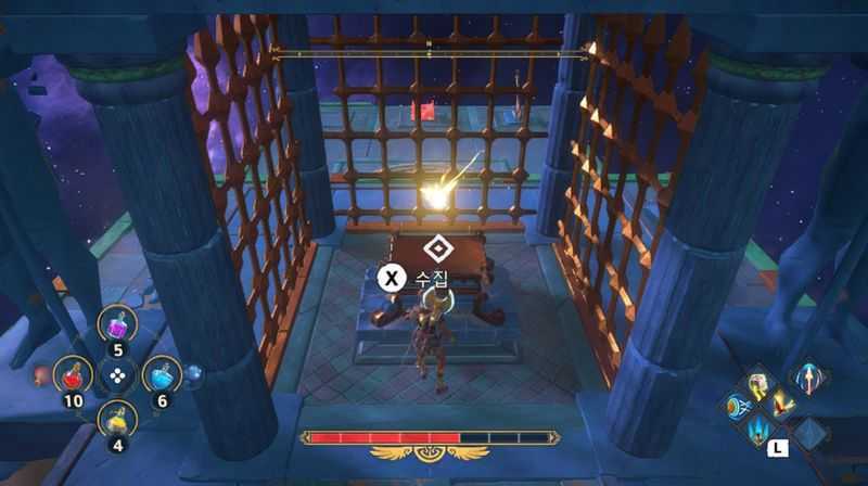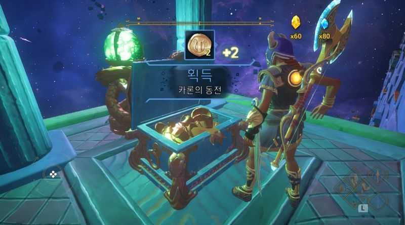 활공으로 상승기류를 타고 안쪽으로 이동후, 왼쪽을 보면 보물상자가 있습니다 (카론의 동전 x2 획득)