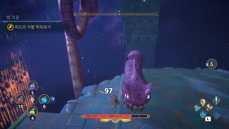 졸개들도 출현하는데, 졸개들보다는, 바닥에 내려온 히드라의 머리부터 집중공략하는 것이 좋습니다.