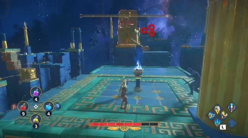 우측도 위와 동일한 방식으로 구멍을 가리고 있는 상자를 치운후, 아폴로의 화살로 불을 스쳐 구멍 3개사이를 지나 뒤쪽의 촛대에 불을 붙이기만 하면 됩니다.