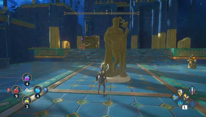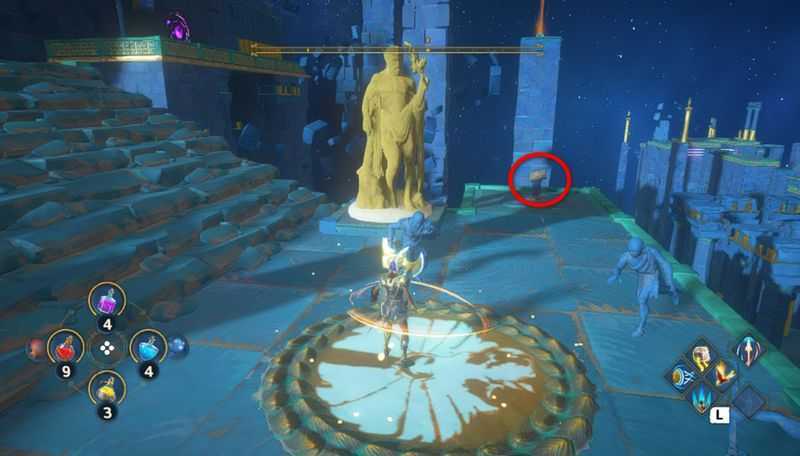 중앙부의 가장 안쪽에 촛대 뒤에는 보물상자가 있으니 열어보시기 바랍니다. (제우스의 번개 획득)