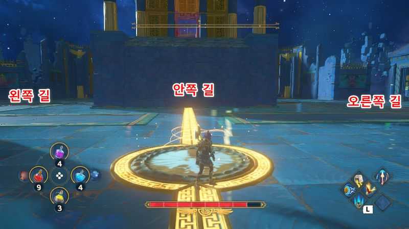 오만한 메두사를 쓰러트린 후, 광장에서 왼쪽, 안쪽, 오른쪽 3갈래 길로 이동할 수 있습니다. 어느쪽 길부터 공략하는지는 자유이지만, 이 글에서는 왼쪽 → 안쪽 → 오른쪽 순으로 적도록 하겠습니다. 각각의 길 앞에는 체크포인트가 있으니 헷갈리지 않을 것입니다.