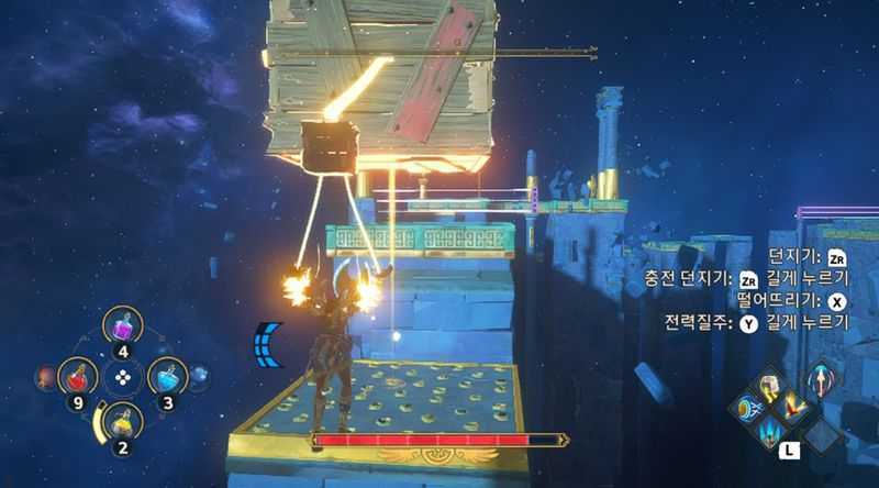 다음 단계도 마찬가지로 왼쪽에 있는 작은상자를 들어서, 큰 상자를 왼쪽 받침대위에 올려놓습니다. 또한 오른쪽에 있는 작은상자를 들어서, 큰 상자를 오른쪽 받침대위에 올려놓습니다. (주의할 점은 이단 도약을 통해 넘어오셔야 한다는 것입니다. 점프 + 점프 버튼으로 이단 도약을 하시면 되는데, 첫번째, 두번째 점프 모두 버튼을 길게 눌러서 멀리 점프하는게 포인트입니다)