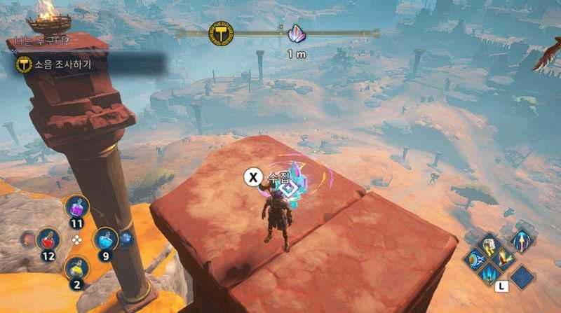 헤파이스토스의 조각상에서 나침반의 목적지 방향으로 향한뒤, 아래로 뛰어내립니다. 붉은 기둥위에 암브로시아가 있으니 획득합시다.