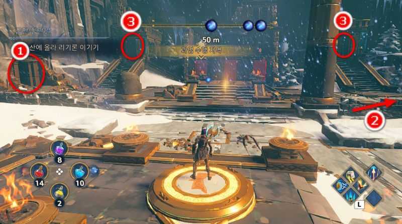 그후 길을 진행후, 긴 계단을 올라가면 필수 신화 도전이 시작되게 됩니다.