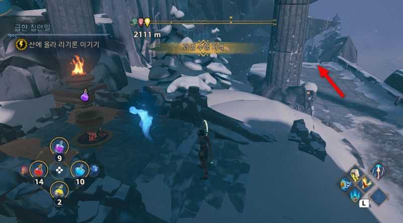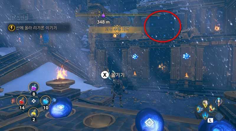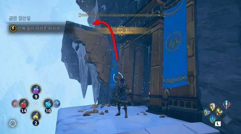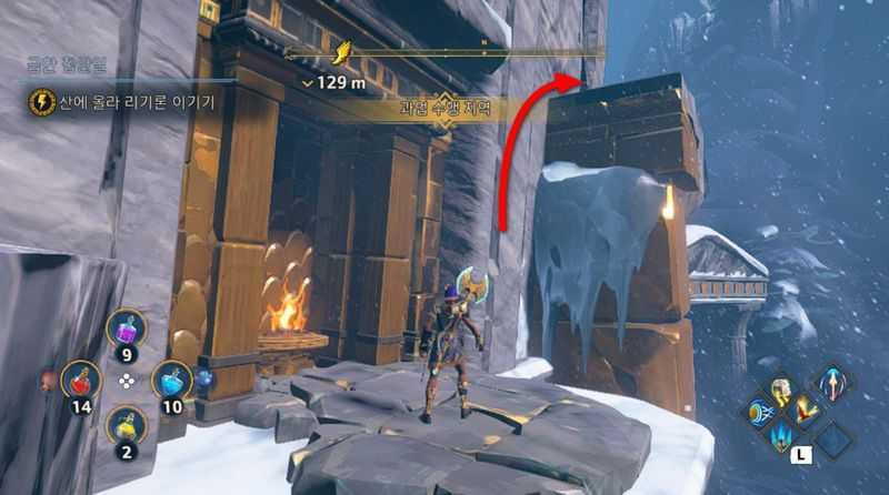 또한 길을 진행하다 위 사진의 위치에 도달하면 좌측 벽 위로 올라가시면 됩니다.