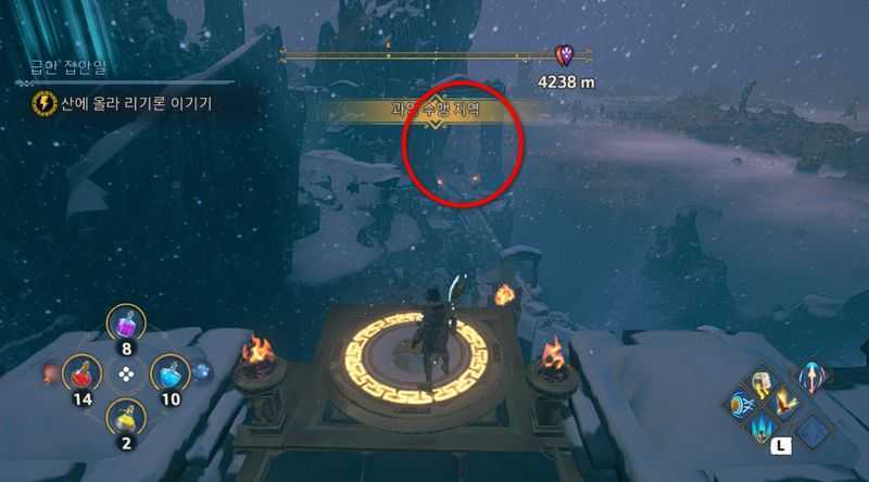 그렇게 꼭대기에 있는 테미스의 제단에 도착하게 되면, 안쪽에 있는 둥근 받침대 위에 올라가면 이벤트가 발생합니다.