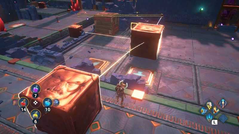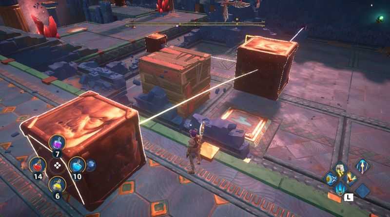 발판을 타고 안쪽의 섬으로 이동후, 장치를 활성화하면 연결된 상자가 여러개 출현할 것입니다.