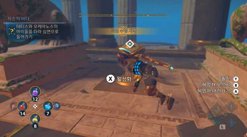 나침반의 목적지로 이동후, 진주 조개 속에 있는 조각상에 상호작용을 합니다.