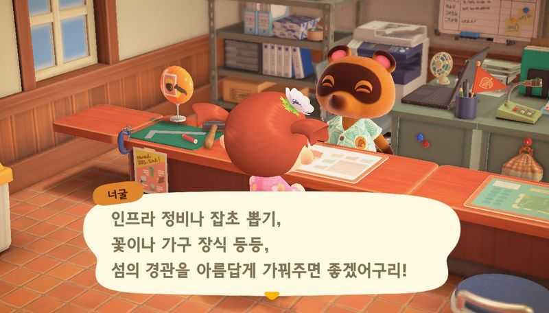 또한 너굴사장에게 대화해 토지 매각을 통해 하우징 키트를 설치하고 새로운 주민들을 더 이사오게 해야 합니다. 주민을총 8명 만드셔야 평판이 올라갑니다.