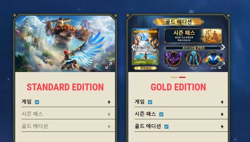 이모탈 피닉스 라이징 스탠다드 및 골드 에디션 차이