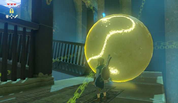 5. 길 앞을 막고 있는 구슬을 타임 록으로 멈춘 뒤, 철 해머로 공격합니다.